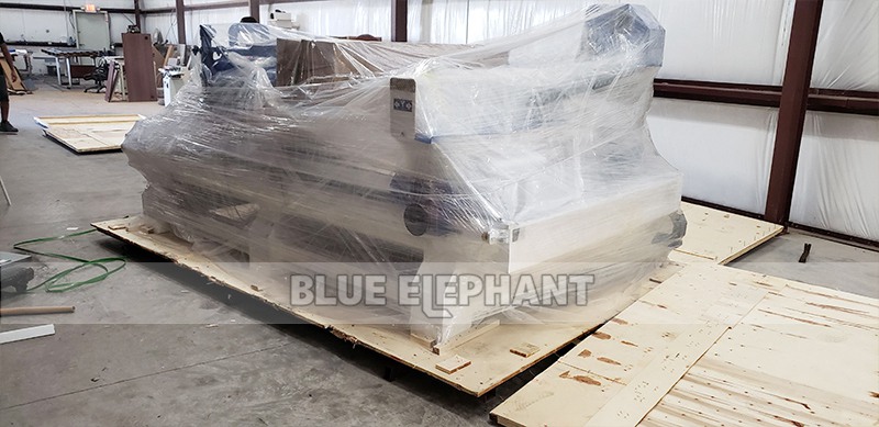 數(shù)控開(kāi)料機(jī)在美國(guó)客戶(hù)廠區(qū)實(shí)拍,以下圖片由藍(lán)象客戶(hù)提供,展示了機(jī)器到廠后的卸貨及安裝調(diào)試,本文結(jié)尾展示的是調(diào)試好的設(shè)備;