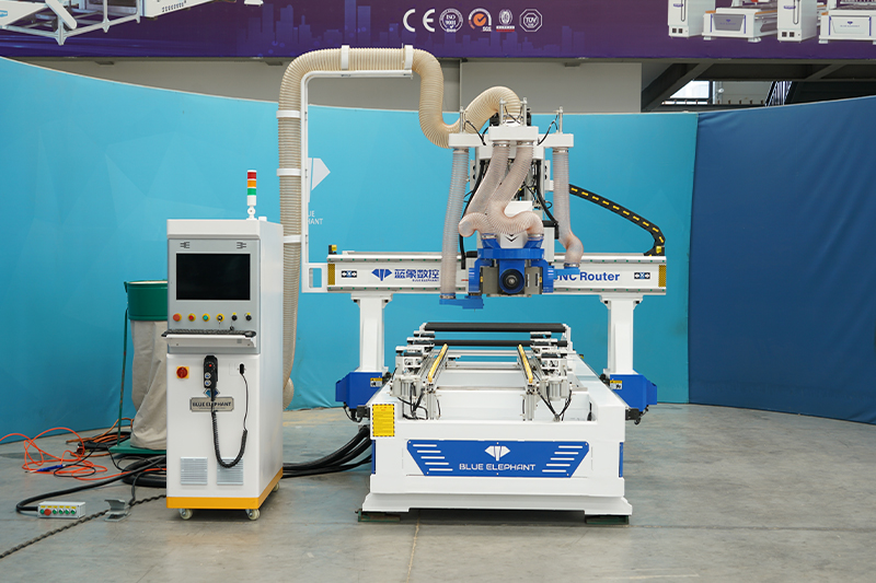 門鎖機(jī)由兩個(gè)垂直主軸、四個(gè)水平主軸(可自由切換角度)、可調(diào)夾具工作臺、輔助上下料裝置等部件組成,木門裝夾方便,多把刀自由切換功能強(qiáng)大。設(shè)備操作簡單便捷,系統(tǒng)功能強(qiáng)大,含有健全的CAM軟件,輕松完成木門鎖孔、鎖槽、合頁面、油漆孔、滑道槽等工藝的加工。